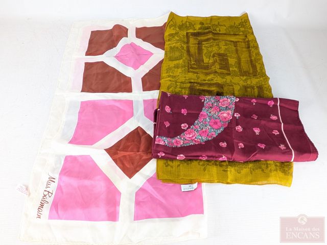 Lot # 61 - Lot de trois foulards en soie, dont un Givenchy, un Miss Balmain et un Christian Dior mesurant 31x31
