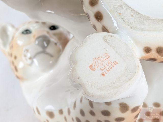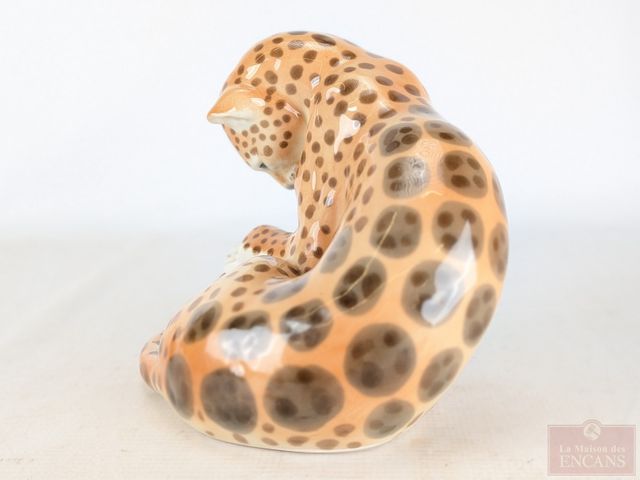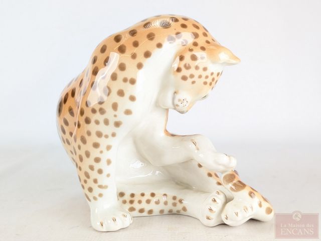 Lot # 31 - Porcelaine vintage Lomonosov faite en U.R.S.S., représentant un léopard et mesurant 7 pouces de hauteur