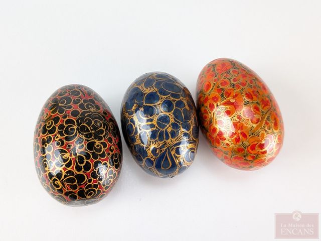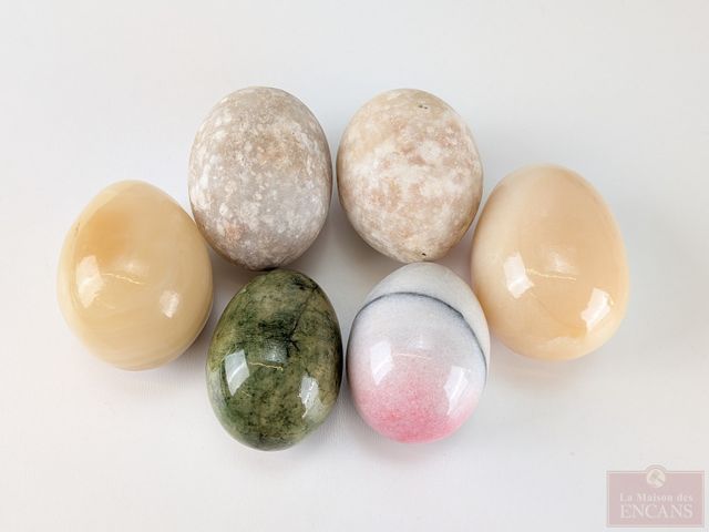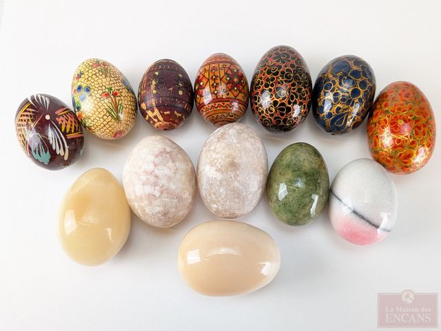 Collections d'œufs, dont certains sculptés sur pierres, le plus grand mesurant 2.75 pouces