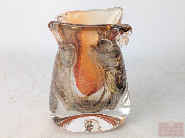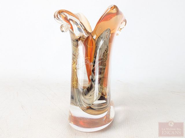 Lot # 170 - Vase artisanal vintage en verre soufflé, signé et mesurant 6 pouces de hauteur