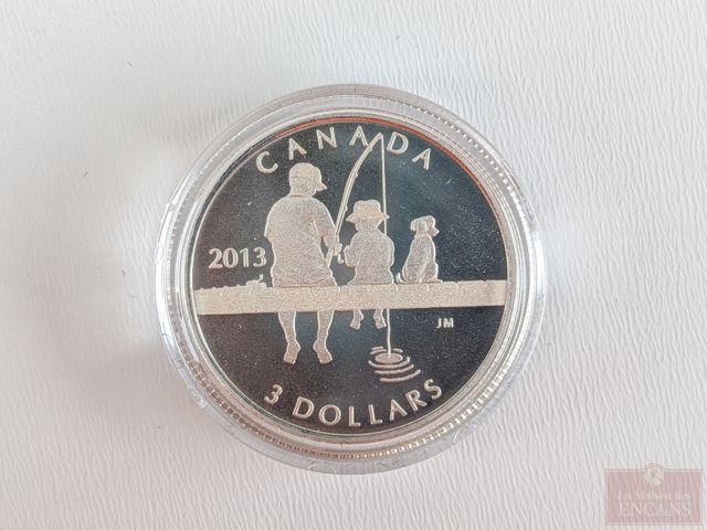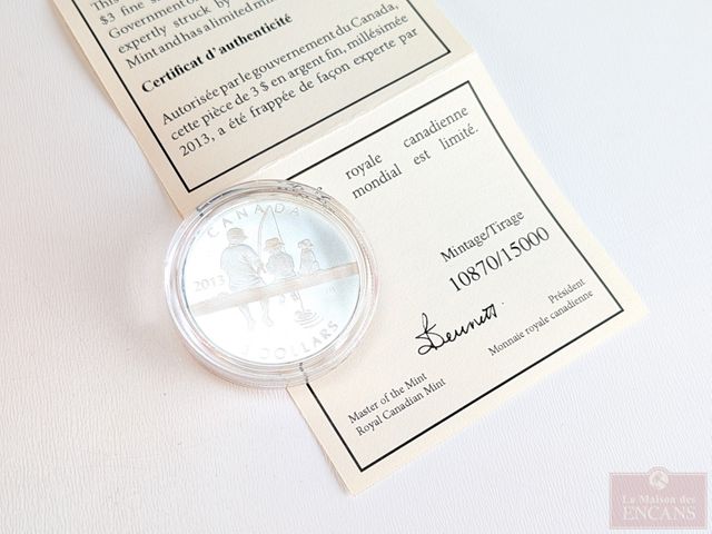 Pièce canadienne de trois dollars 2013 en argent pur 9999 La pêche, encapsulée, avec document, sans taxes