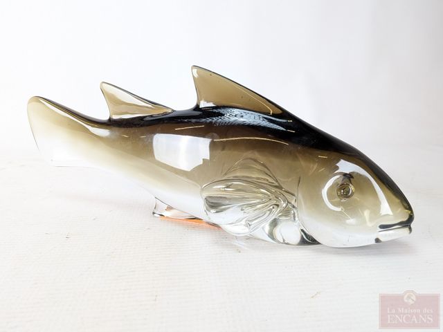 Lot # 154 - Poisson en verre fumé, signé et mesurant 11.5 pouces de longueur