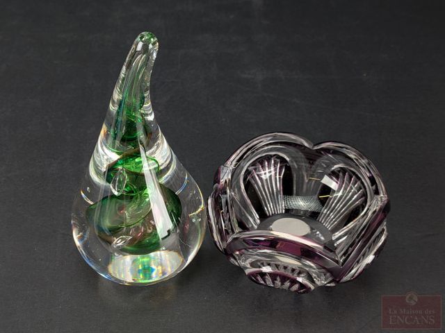 Deux presse-papiers, un en verre soufflé et un cristal, le plus grand mesurant 5.25 pouces de hauteur