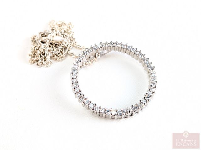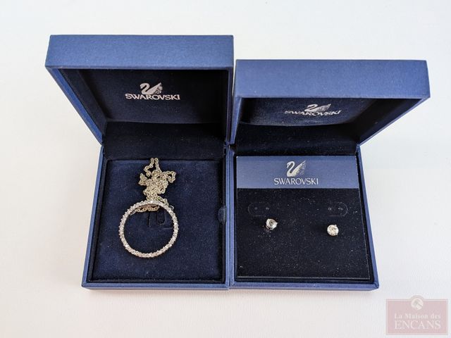 Lot # 191 - Paire de boucles d'oreilles et pendentif avec chaine en argent Swarovski, la chaine mesurant 18 pouces de longueur, avec certificats