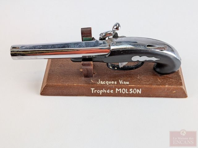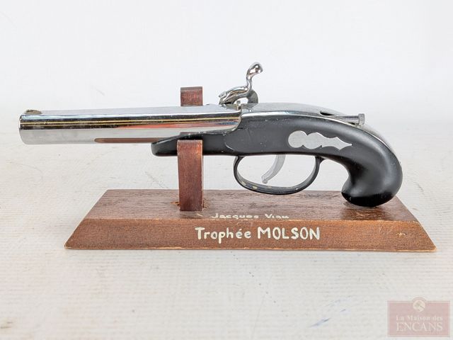 Lot # 216 - Trophée Molson Jacques Viau briquet en forme de pistolet à bourre, mesurant 8 pouces de longueur
