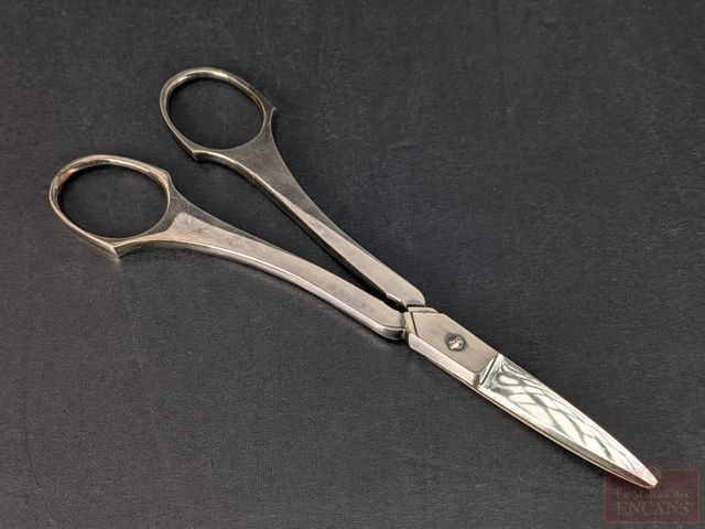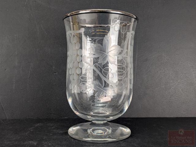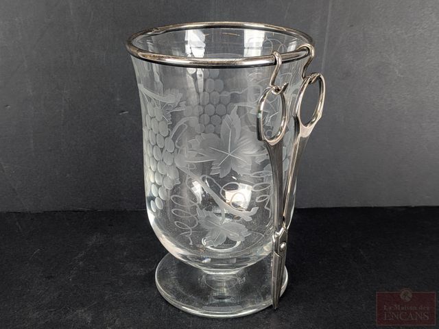 Vase service à raisin en verre ciselé avec sa paire de ciseaux, datant de la fin du 19eme/début du 20eme siècle et mesurant 6.75 pouces de hauteur