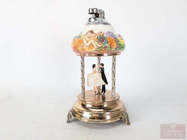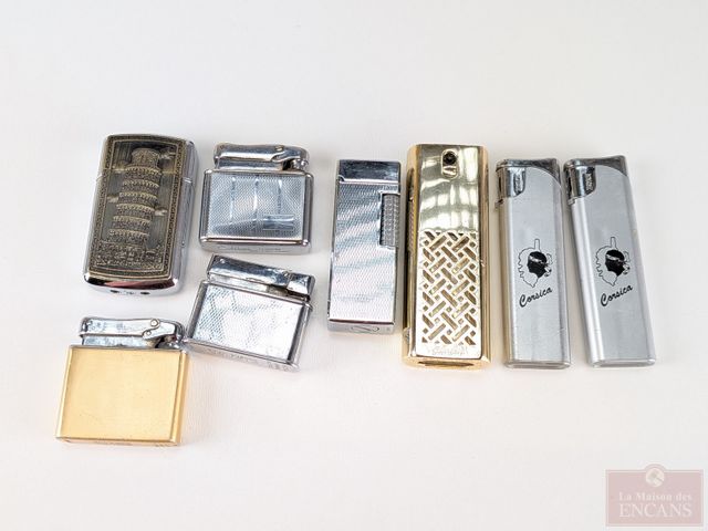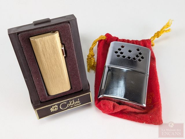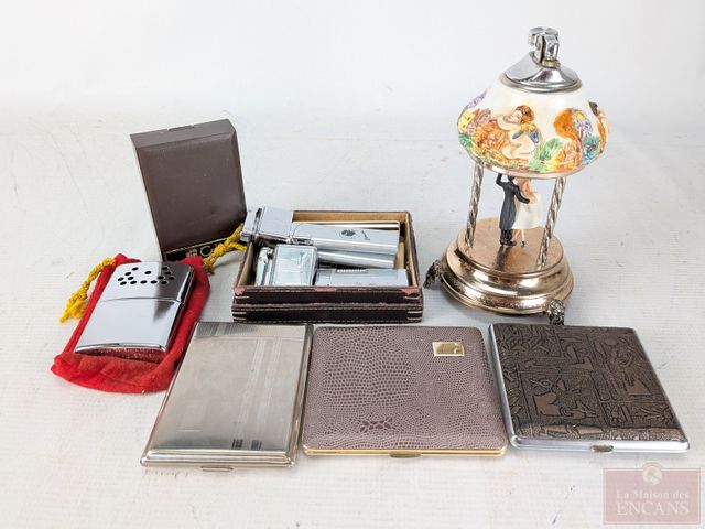 Lot # 109 - Collection de briquets vintages et porte-cigarettes, comprenant briquets Colibri, dont un dans sa boite, ainsi que briquet italien en porcelaine et métal avec boite musicale et autres