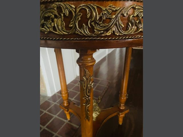 Lot # 239 - Magnifiques paire de tables françaises en bois des années 1930 avec de jolis détails architecturaux - mesurant 30 pouces de hauteur et 22 pouces de diamètre - devra être récupéré chez le vendeur à Montréal VENDU