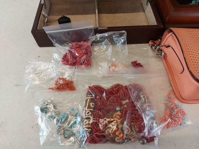Lot # 227 - Lot varié comprenant un sac Coach ainsi que deux boites à bijoux dont une en cuir véritable avec sa clef et mesurant 12x7 pouces et une en bois musicale mesurant 11x8 pouces ainsi qu'un lot de bijoux VENDU