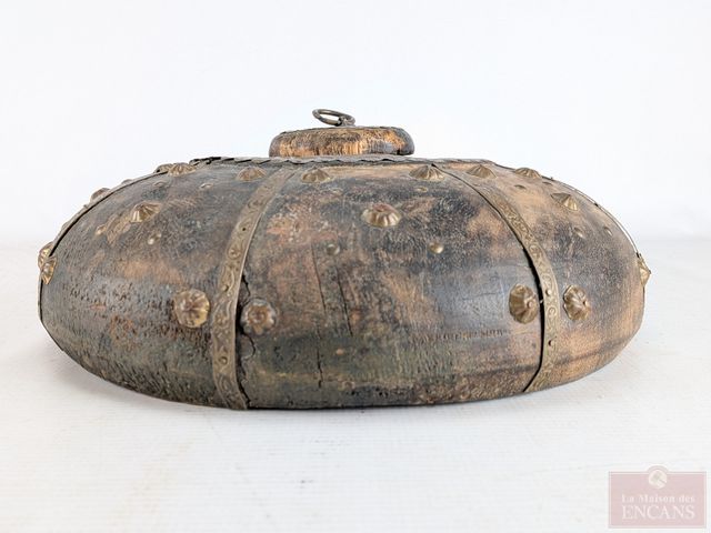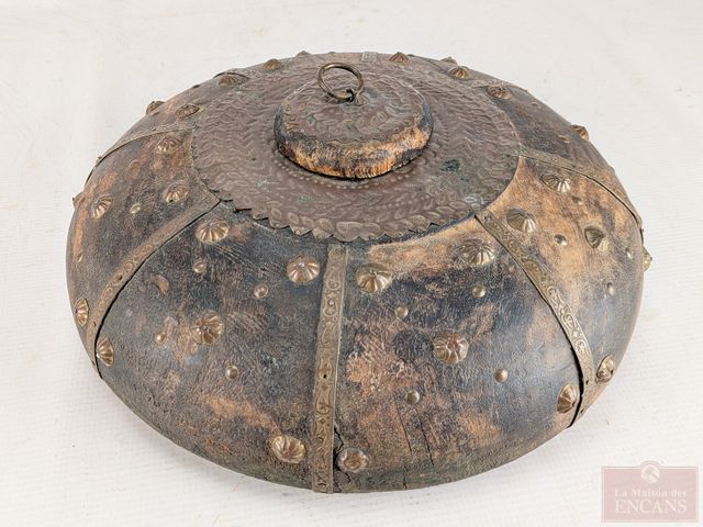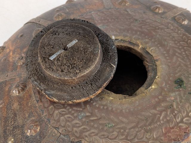 Lot # 48 - Contenant à opium tibétain en bois et cuivre, datant de la fin du 19eme/début du 20eme siècle et mesurant 13 pouces de diamètre