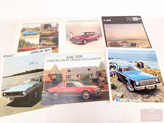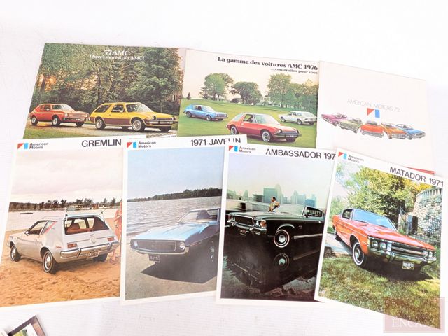 Lot # 203 - Lot de brochures automobiles AMC 1969, 1974, 1975, 1976, 1977, 1978, 1979, 1980, Pacer 1975, Gremlin 1975, Javelin 1973, AMX Story 1968, American Motors 1967 et autres SOLD