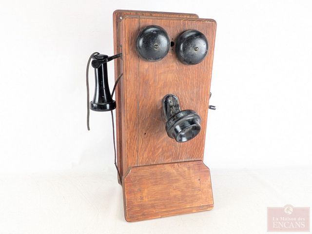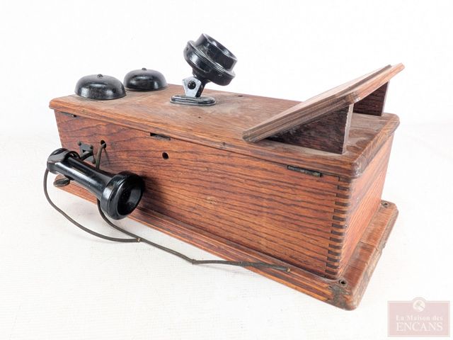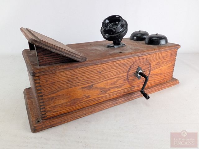 Lot # 141 - Ancien téléphone à cornet en chêne, datant du début du 20eme siècle et mesurant 20.5 pouces de hauteur SOLD