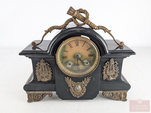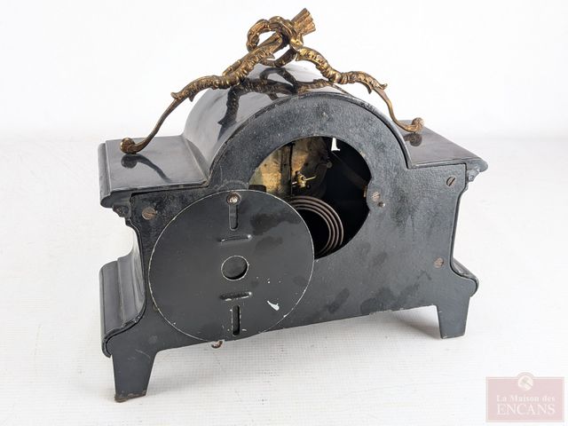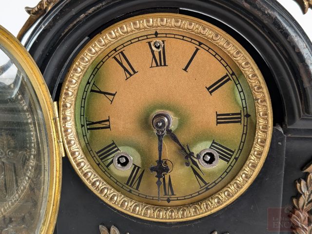 Lot # 11 - Horloge de cheminée en métal avec garnitures en métal doré, datant du 19eme siècle et mesurant 13 pouces