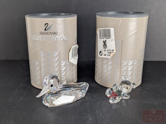 Lot # 225 - Deux figurines Swarovski en cristal, faites en Autriche, représentant un canard et un ourson, dans leurs boites d'origines, la plus grande figurine mesurant 3.5 pouces SOLD