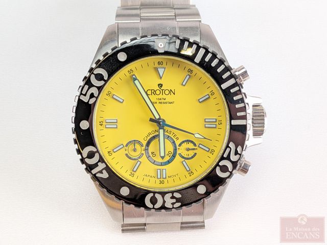 Lot # 216 - Montre Croton référence CC311240, mouvement au quartz, mesurant 48 millimètres avec sa couronne signée, neuve, dans sa boite (besoin d'une nouvelle batterie) SOLD