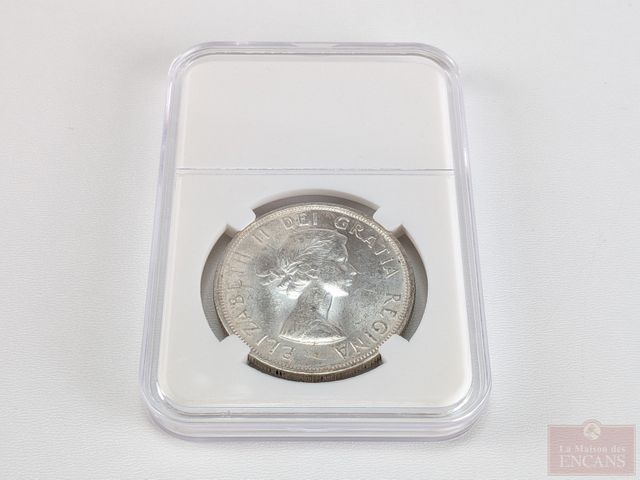 Pièce canadienne d'un dollar 1958 en argent, encapsulée