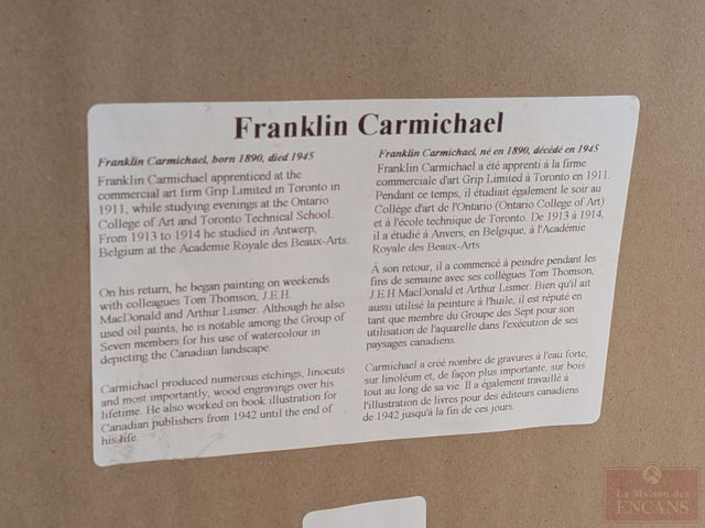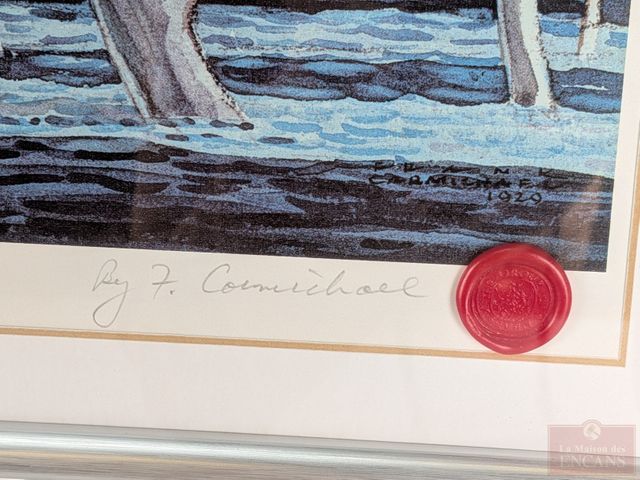Lot # 116 - Impression sur papier d'une œuvre de Frank Carmichael (Groupe des sept) numérotée à la mine, avec sceau officiel, mesurant 16x20 pouces