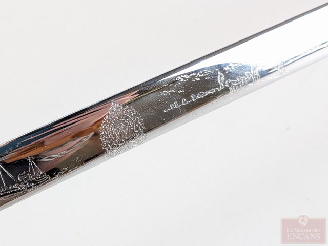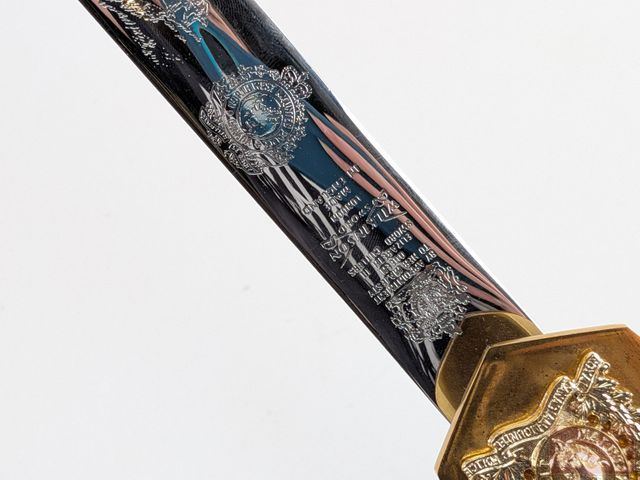 Lot # 128 - Épée de parade offerte à un haut-gradé de la Gendarmerie Royale Canadienne, faite en Angleterre par Wilkinson London, avec poignée en bois et laiton, mesurant 35.5 pouces de longueur au total SOLD