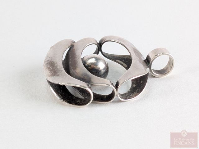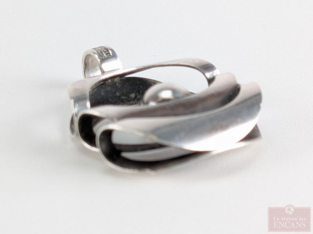 Lot # 105 - Pendentif moderniste en argent, design par Elis Kauppi, fait en Finlande et mesurant 1.5 pouces de hauteur