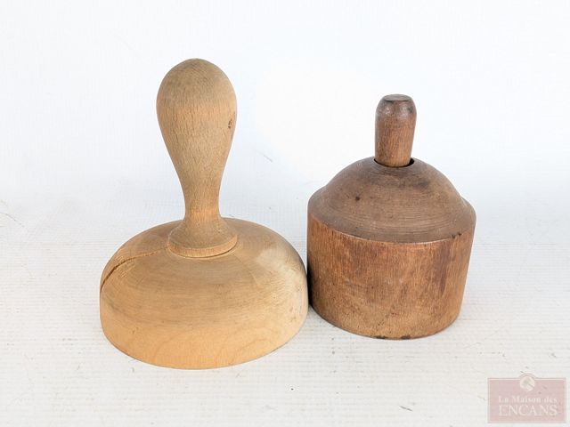 Lot # 41 - Lot d'anciens moules à beurre sculptés en bois, comprenant motifs de fleurs et de vache, le plus grand mesurant 7 pouces de hauteur
