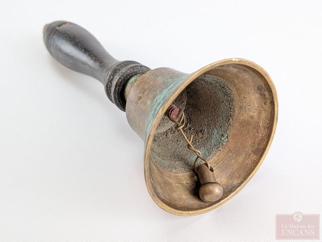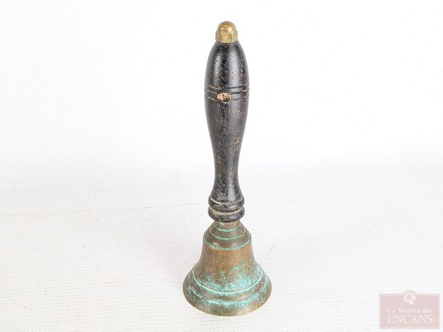 Lot # 182 - Cloche d'école en bronze avec poignée en bois, datant du début du 20eme siècle et mesurant 7.25 pouces de hauteur SOLD