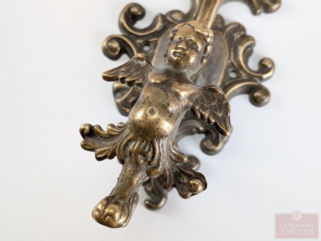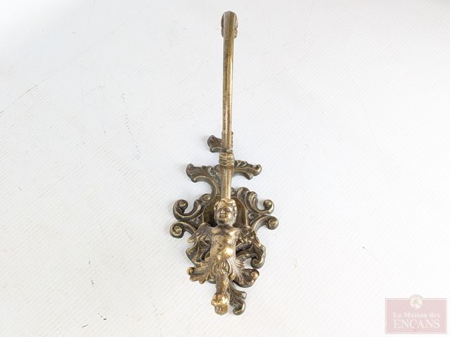 Lot # 123 - Ancien porte-manteau en bronze à motif de chérubin, mesurant 9 pouces de hauteur SOLD