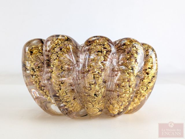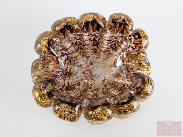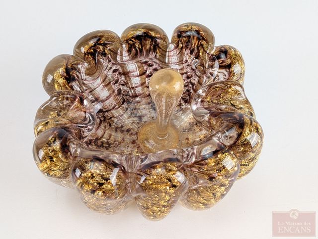 Cendrier et éteignoir en verre de Murano Barovier avec feuille d'or, datant des années 1960, le cendrier mesurant 5.75 pouces