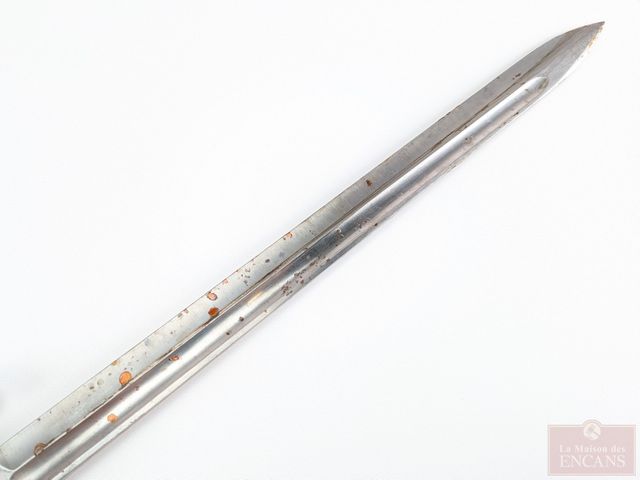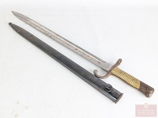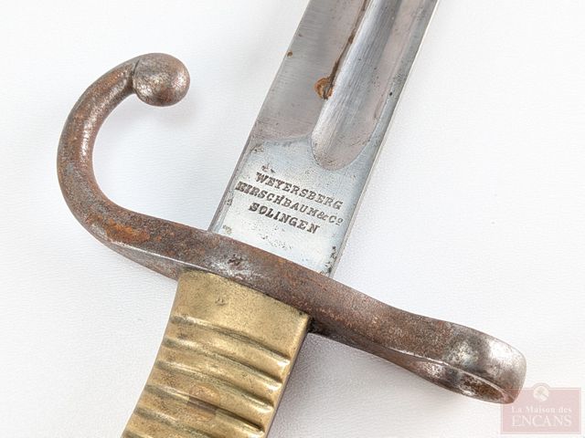 Baïonnette allemande Weyersberg Kirschbaum and Company Solingen, avec poignée en métal et laiton, datant de la première guerre mondiale et mesurant 20.5 pouces de longueur, dans son fourreau d'origine