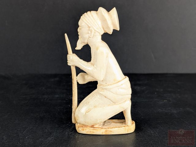 Sculpture africaine sur ivoire, datant des années 1960 et mesurant 4 pouces de hauteur