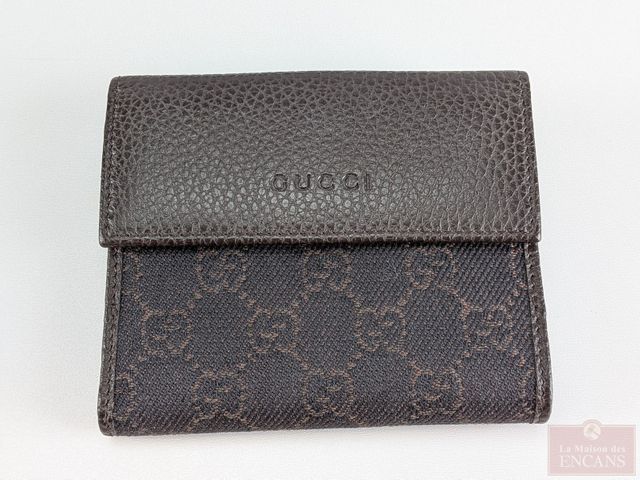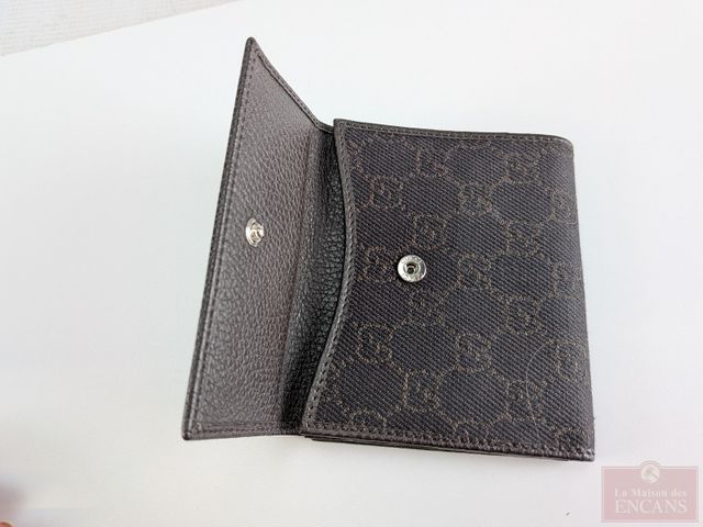 Lot # 218 - Portefeuille Gucci GG monogramme canva et cuir, fait en Italie, acheté au magasin Gucci à Miami et mesurant 4.75 pouces SOLD