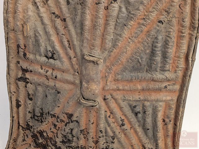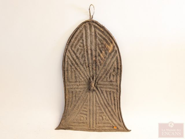 Lot # 5 - Ancien bouclier africain Kirdi provenant du nord du Cameroun, fait en peau de buffle tannée et mesurant 41 pouces de hauteur