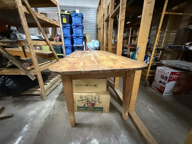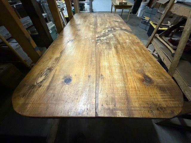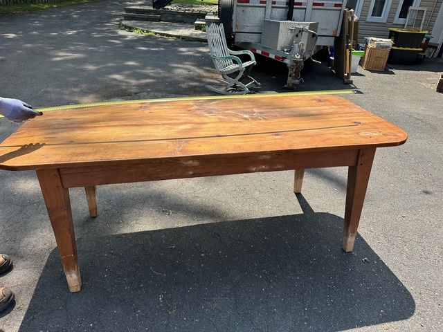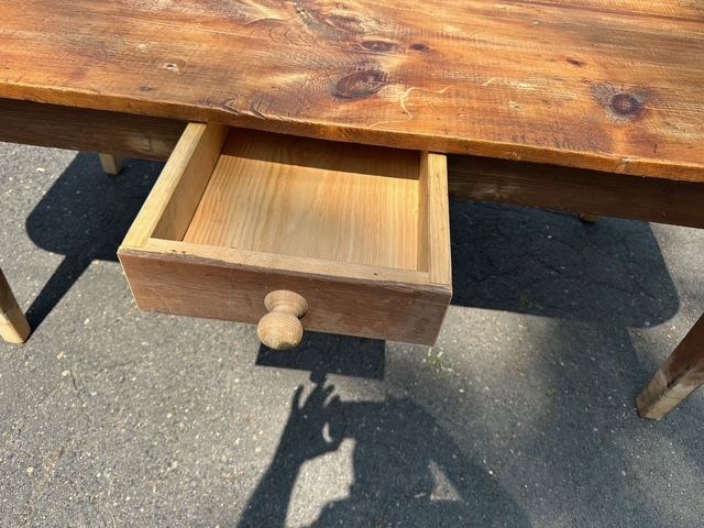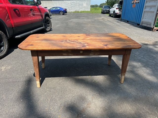 Lot # 168 - Ancienne table canadienne en pin à un tiroir, datant de plus de 200 ans et mesurant 76.5x34 pouces SOLD