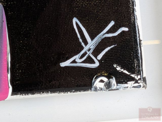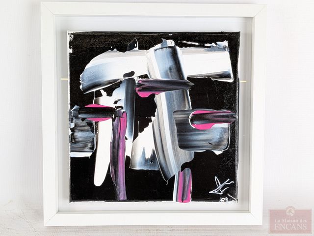 Lot # 165 - Sam SIMEONE- Acrylique sur toile signée, mesurant 12x12 pouces et titrée Rose et Blanc, avec certificat d'authenticité et sceau de l'artiste à l'endos SOLD