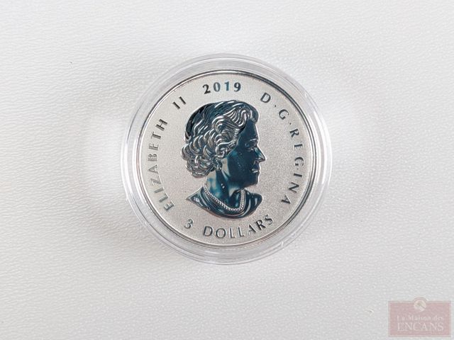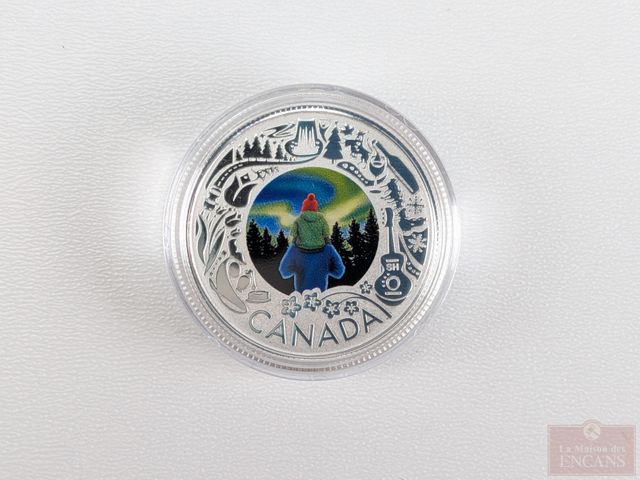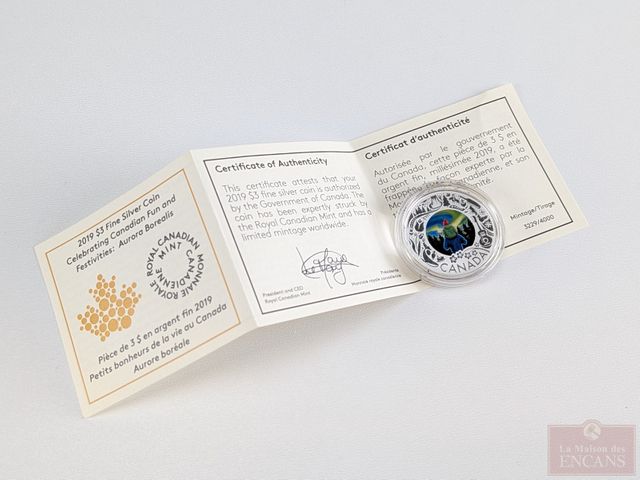 Pièce canadienne de trois dollars 2019 en argent pur 9999 Petits Bonheurs de la Vie au Canada : Aurore Boréale, encapsulée, sans taxes
