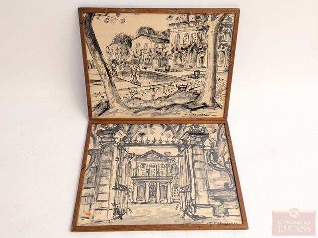 Lot # 142 - Deux encres sur papiers mid-century, signées et mesurant 20x26 pouces chacune CANCELLED