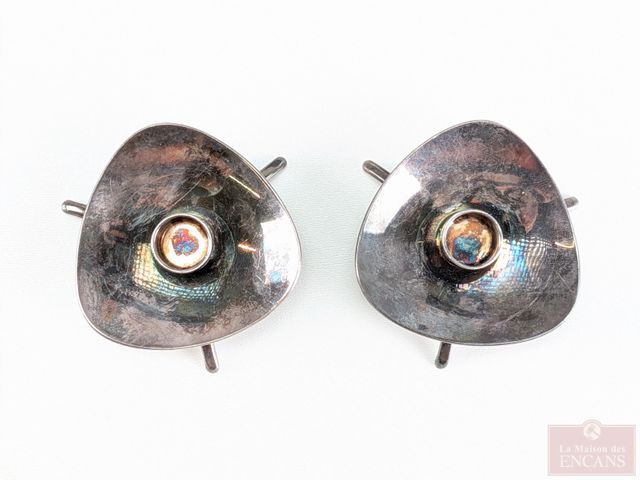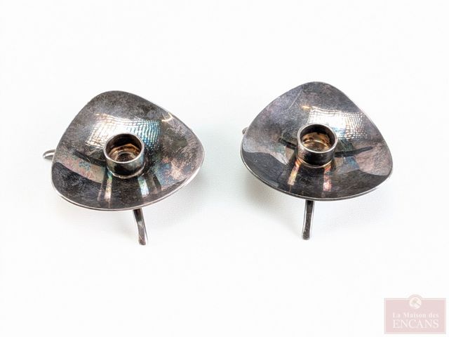 Lot # 236 - Paire de bougeoirs danois vintages en métal argenté, design par Carl Christianson pour Cohr, mesurant 2.25 pouces de hauteur CANCELLED