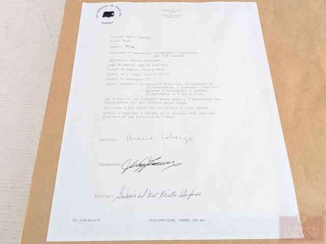 Lot # 170 - Marie LABERGE- Lithographie signée et numérotée à la mine, mesurant 10x7.5 pouces SOLD