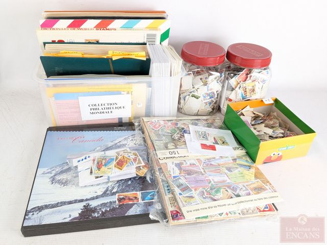 Gros lot philatélique international comprenant timbres canadiens, dont coffret 1997, timbres allemands et autres