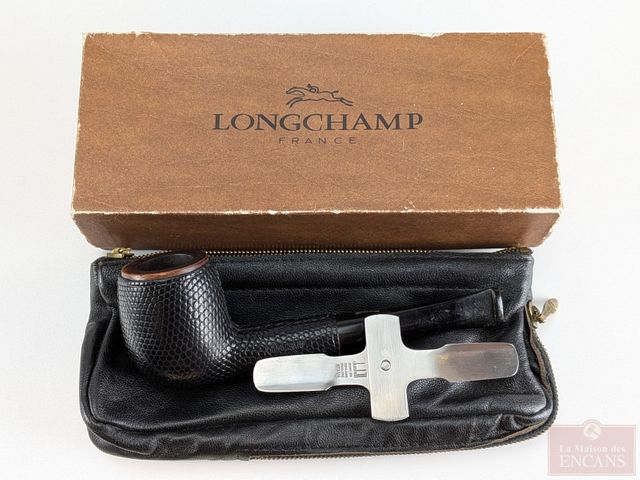 Pipe Longchamp dans sa boite d'origine mesurant 5.5 pouces de longueur, ainsi qu'un alésoir à pipe Dunhill, fait en Angleterre et mesurant 3.75 pouces