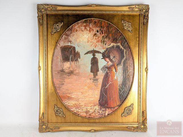 Lot # 134 - Huile sur toile mesurant 24x19 pouces, dans un joli encadrement doré richement ornementé, mesurant 29.5x25.5 pouces SOLD