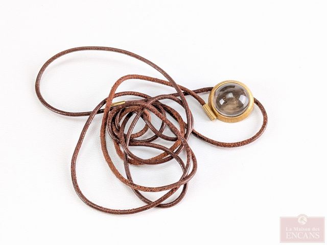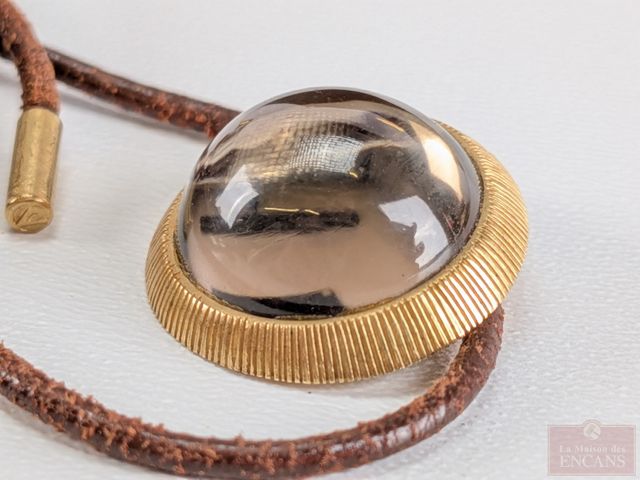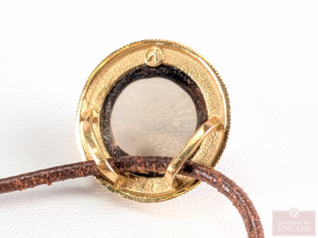 Lot # 226 - Collier de cuir avec pendentif en or 18k serti d'un cristal, le pendentif mesurant 0.75 pouces de diamètre SOLD