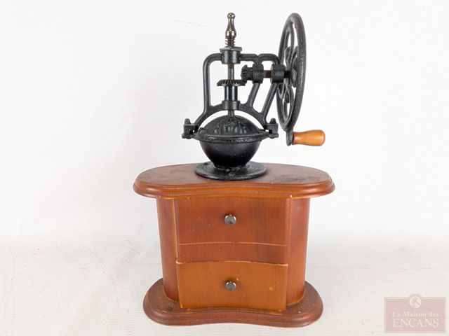 Lot de moulins à café vintages, dont un moyen-oriental en laiton, le plus grand mesurant 13 pouces de hauteur