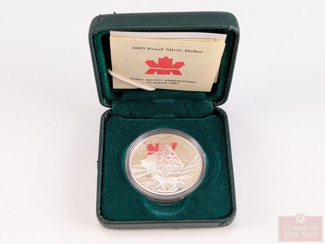 Lot # 101 - Pièce canadienne d'un dollar 2003 en argent pur 9999 La Naissance de l'Industrie Minière Canadienne - Centième anniversaire du gisement d'argent de Cobalt Lake, dans son coffret, sans taxes