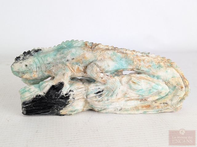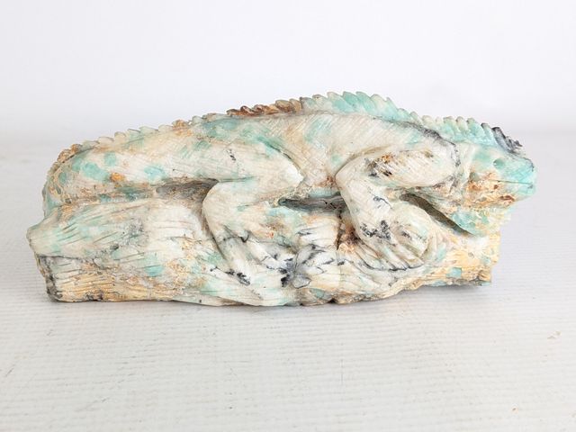 Lot # 205 - Sculpture sur pierre d'émeraude de Colombie, représentant un iguane et mesurant 7.5 pouces de longueur, avec certificat d'origine SOLD