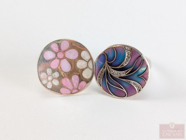 Lot # 75 - Deux bagues en argent et émail de tailles 7 et 9.25