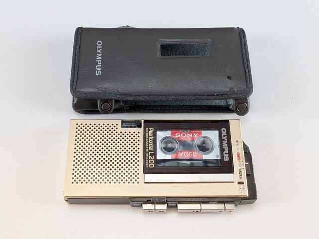 Lot # 73 - Enregistreur-cassette Olympus Pearlcorder L200, fait au Japon, mesurant 4.5 pouces dans son étui d'origine, fonctionnel SOLD