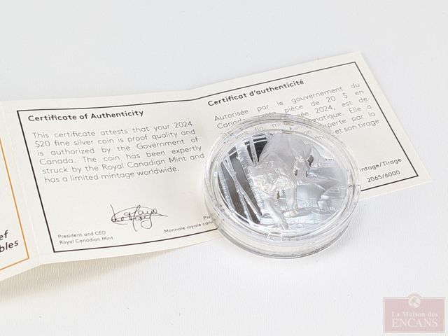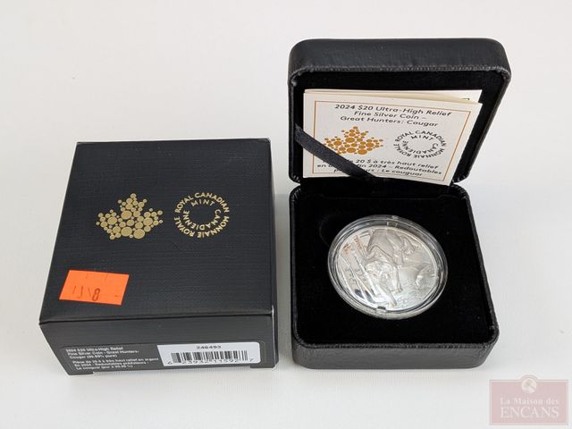 Lot # 87 - Pièce canadienne d'une once d'argent pur 9999 vingt dollars haut-relief Le cougar, dans sa boite avec certificat, sans taxes SOLD