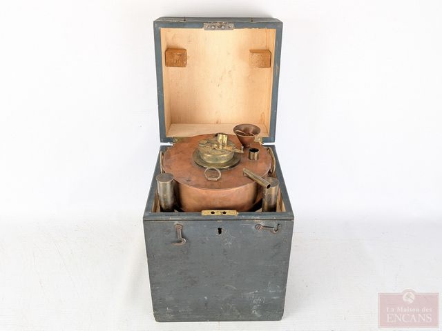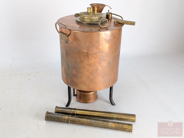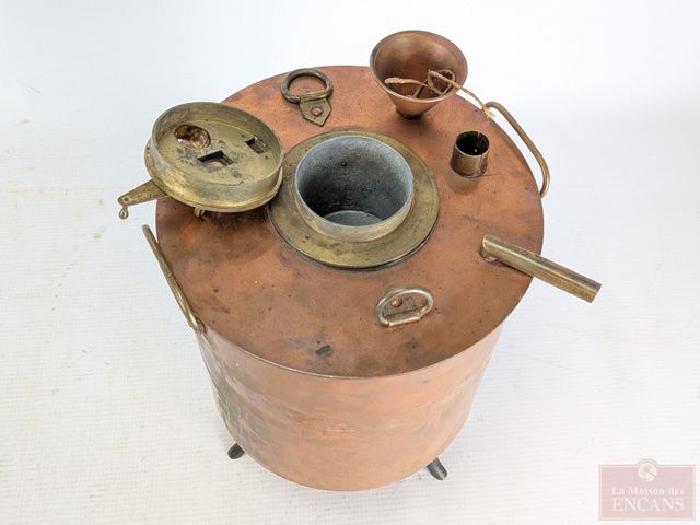 Lot # 153 - Ancien alambique en cuivre datant du 19eme siècle, dans son coffre mesurant 12.5 pouces de hauteur SOLD