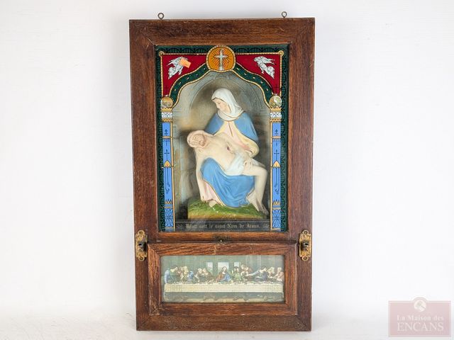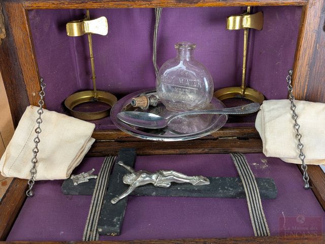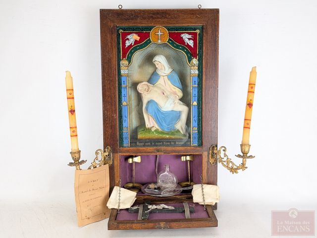 Lot # 5 - Autel de Saint-Nom contenant boite de communion, datant du début du 20eme siècle et mesurant 23 pouces de hauteur, avec ses accessoires et livret SOLD