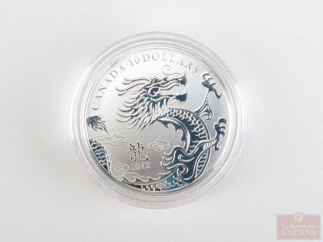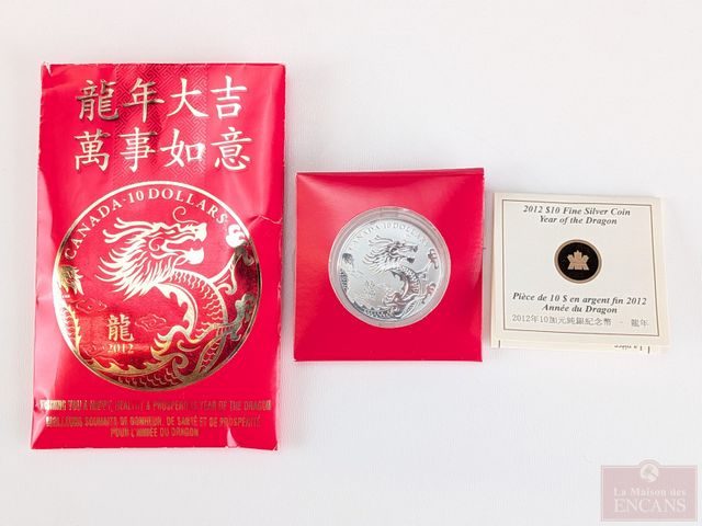 Lot # 225 - Pièce canadienne de dix dollars en argent pur 9999 Année du dragon 2012, avec certificat, sans taxes SOLD